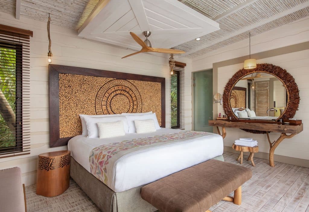 Set high amidst the forest canopy, the 2,368 square foot Vertigo Lodge has three bedrooms, three en-suite bathrooms, a fully-equipped kitchen with high-end appliances, a cozy living room, a safe, and room service.