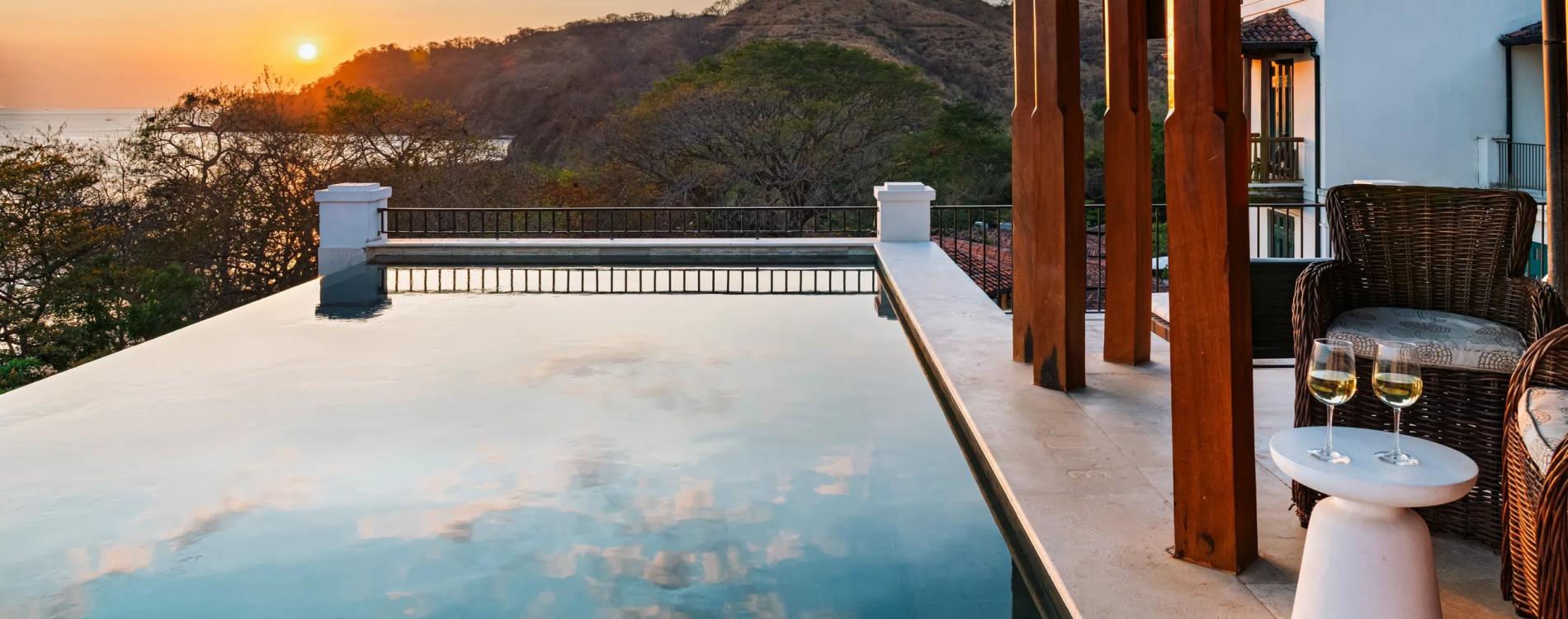 One of Santarena’s most iconic features is its rooftop infinity pool, a serene escape with panoramic views over the Pacific and the forested hills of the Nicoya Peninsula. It’s a favorite spot for: